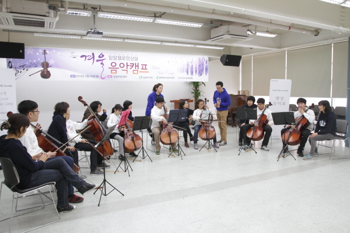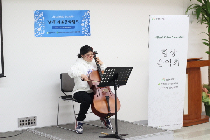 24일, 오전 10시. 일원동 밀알학교에 ‘날개’의 첼로연주 소리가 울려 퍼졌습니다. 이 날은 2012년 11월부터 활동해온 밀알첼로앙상블 날개 단원들의 겨울음악캠프가 한창이었습니다.