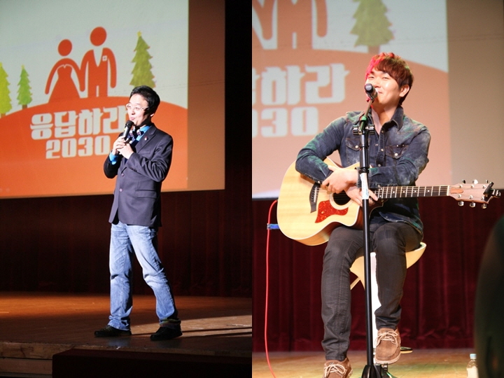 아프리카에 희망의 빛을 보내는 나눔 콘서트 '응답하라 2030' 행사가 지난 23일 오후 8, 건국대학교 새천년관에서 열렸습니다. 밀알복지재단에서 주최한 '응답하라 2030'2030세대의 솔로와 커플들을 대상으로 강연과 음악 그리고 기부를 함께 즐길 수 있도록 한 나눔 축제였습니다.