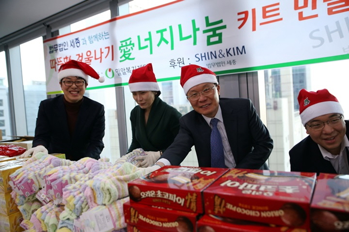 앞서 법무법인 세종은 지난 11월 29일, 세종 사옥에서 홀몸 어르신들의 따뜻한 겨울을 위한 '愛너지 나눔 키트 만들기' 봉사활동을 진행하기도 했습니다. 이날 임직원들은 봉사활동을 통해 방한용품 10개 품목으로 구성된 키트 100개를 제작했고, 밀알복지재단 산하시설인 도봉노인종합복지관을 통해 홀몸 어르신들에게 전달하였습니다. 지난 12월 14일에는 밀알복지재단에서 운영 중인 장애인 근로 사업장 굿윌스토어 도봉점을 방문하여 자원봉사활동을 펼치고 전체 임직원이 모아 온 기증품을 전달하기도 했습니다.
