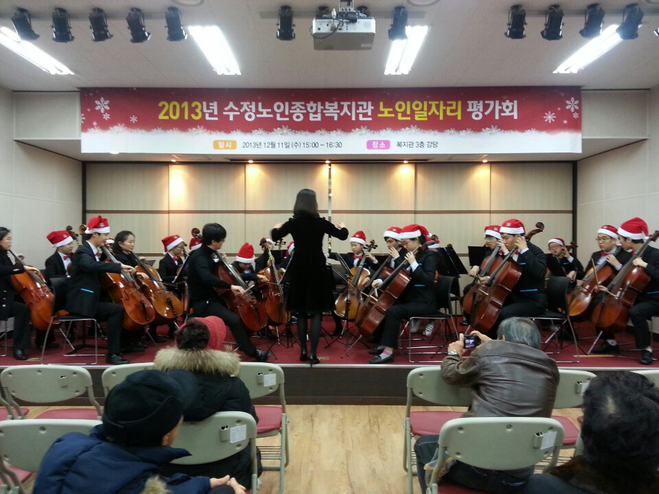 11일 수정노인종합복지관에서는 200여명의 어르신들 앞에서 할아버지시계’, ‘아리랑등 총 4곡을 연주해 어르신들의 뜨거운 호응가운데 감동적인 연주를 마쳤습니다.