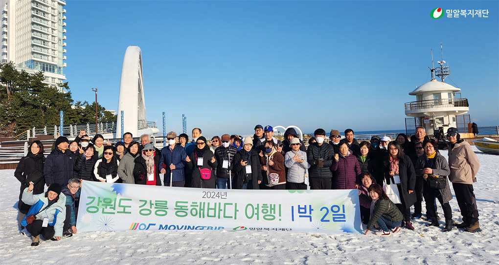 밀알복지재단 헬렌켈러센터는 지난 2월, 시청각장애인 20여 명과 함께 강원도 강릉시로 1박 2일 '감성 여행'을 다녀왔습니다. 이번 여행에 함께한 참가자들의 대부분은 지방에 거주하는 시청각장애인들로, 여행과 같은 장시간·장거리 외출 시 도움받을 수 있는 가족·지인이나 복지시설이 없거나, 경제적 어려움으로 여행은 꿈꾸기 어려운 분들이 많았다고 합니다.