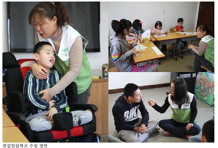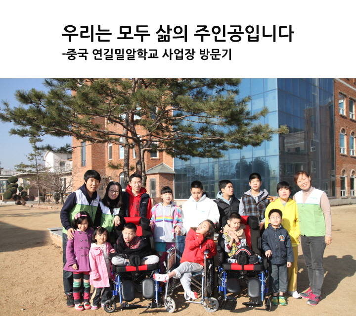 우리재단은 지난 11월 3일부터 4일간 중국 장애인지원사업 현장인 연길밀알학교에 다녀왔습니다. 지난 2012년부터 중국 현지 사회복지법인 ‘사랑의 집’과의 협약을 통해 13명의 현지 장애아동들을 대상으로 특수교육을 실시하고 있으며, 국내 2명의 특수교사파견, 교육환경구축 및 운영비지원 등의 형태로 협력하고 있습니다.