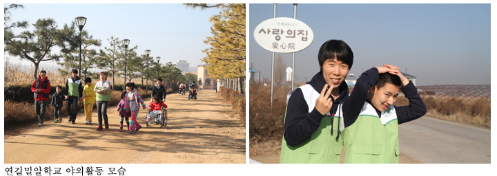 밀알은 지난 2012년 5월 이지연, 정진희 2명의 특수교육전문봉사자를 사랑의 집으로 파견해 연길밀알학교를 개원하였습니다. 기관 15명의 장애아동 중 수업이 가능한 13명을 대상으로 특수교육을 실시하고 있습니다. 연길밀알학교는 5세부터 13세 까지 밀알 1반(7명), 14세부터 27세까지 밀알 2반(6명)으로 구성되어 운영하고 있습니다. 밀알에서 특수교사를 보내기 전까지 사랑의 집 장애아동들은 집안에서만 생활했습니다. 먹고, TV보고, 자는 것이 이들 삶의 전부였습니다. 일 년이 지나도록 특별히 웃을 일도, 슬플 일도 없었습니다. 사랑의 집에 있는 직원들도 이러한 장애아동들의 삶이 당연한 것으로 생각했고, 심지어 사랑의 집에 장애아동이 함께 지내고 있다는 사실조차 모르는 사람들도 있었습니다.