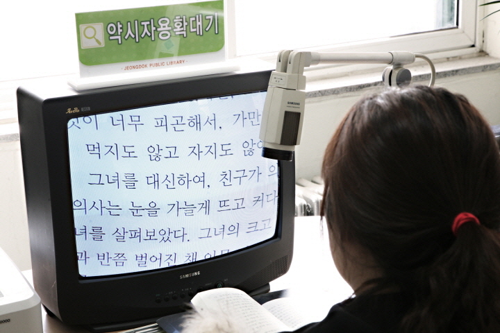 1층 어문학실에서 휠체어를 빌릴 수 있었습니다. 이곳에는 장애인 정보누리터라는 공간이 있어서 장애인들이 편리하게 도서관을 이용할 수 있도록 배려하고 있었습니다. 시각장애인들을 위한 점자 책과 확대기, 텍스트를 소리로 바꿔주는 장비등이 마련되어 있었습니다. 다만 이용 빈도가 적어 점자책이 적다는 점은 안타까웠습니다. 시각장애인들은 점자도서관과 국립장애인도서관 편이 책을 보기에는 훨씬 편리할 것 같습니다. 그래도 아주 적은 장애인 이용자들을 위해 장비들을 마련하고 있다는 점이 다행스럽게 여겨졌습니다.