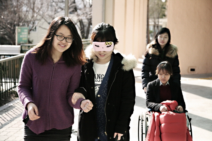 시각장애인을 체험하는 임수연 기자님과 한윤정 기자님은 시간이 갈 수록 점점 가까워지더니 결국 연인처럼 보이기까지 했습니다. 처음 시각장애인이 되어본 임수연 기자님은 자신의 눈과 같은 한윤정 기자님에게 의지할 수 밖에 없었고 친절하게 모든 걸 설명하고 안전을 책임진 한윤정 기자님도 보호 하기 위해서 더 가까이 가야만 했기 때문입니다.