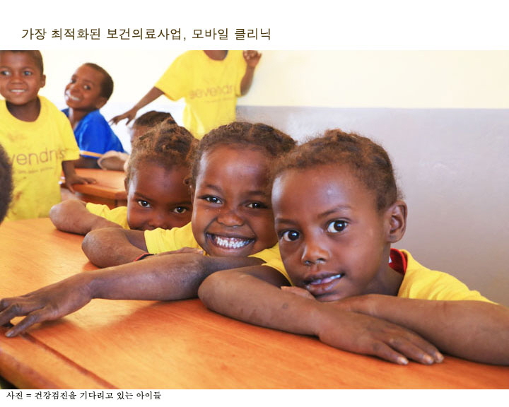 또한 모바일 클리닉을 위해 정부의 허가를 받고, 해당지역을 관할하는 간호사 등 의료인력과 공조하는 과정에서 참여, 협력, 주인의식 등을 개발하게 됩니다. 모바일 클리닉 팀이 해당지역을 방문할 때 전문가로 구성된 리서치 팀이 동행하며 지역리서치를 병행함으로써, 마다가스카르 전국 구석구석에 대한 자료 수집 및 분석활동도 실시되고 있습니다. 무엇보다 오지의 주민들이 적은 비용으로 치료를 받을 수 있다는 점을 사업의 진가로 꼽을 수 있습니다.