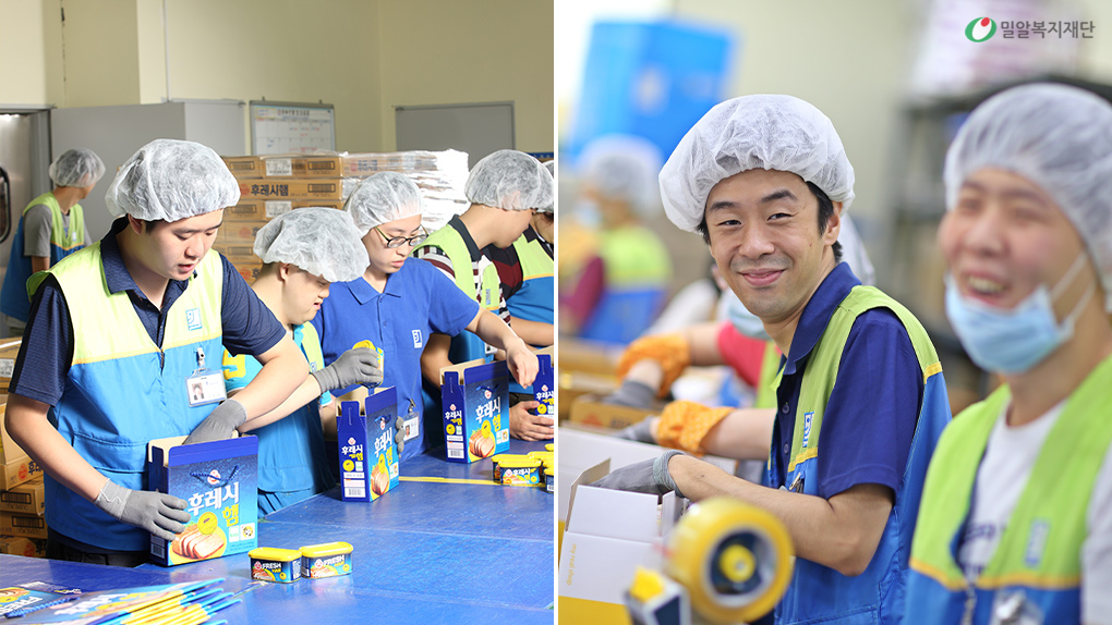 굿윌스토어 발달장애인 사원들은 대풍공장에 방문하여 자신들이 판매하는 제품의 제조과정을 직접 보고 배우는 직업 훈련의 시간도 가졌습니다. 또한, 오뚜기는 2018년 강원도 평창군에서 개최된 *동계 패럴림픽에 차량과 경기관람을 지원하여 굿윌스토어 발달장애인 사원들은 처음으로 패럴림픽 경기를 관람할 수 있었습니다. 오뚜기의 뜻깊은 기부와 나눔은 굿윌스토어 발달장애인 사원들이 자립할 수 있는 일자리 지원뿐만 아니라 일상생활에서 세상과 소통할 수 있는 귀한 시간을 선물해 주었습니다.