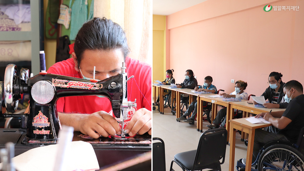 밀알복지재단은 2018년 네팔 수도 ‘카트만두’ 근교인 ‘카브레’ 지역에서 네팔 현지 파트너기관인 ‘네팔척수장애인협회(Spinal Injury Sangh Nepal)’와 함께 ‘한국국제협력단(KOICA)’의 지원을 받아 네팔 최초의 장애인 전문 직업훈련 기관인 VOICE 직업훈련센터를 운영했습니다. 직업훈련을 통해 장애인들의 자립을 지원했지만, 2020년 초 전 세계적으로 시작된 코로나19로 인해 직업훈련을 중단할 수밖에 없었습니다. 하지만 밀알복지재단은 코로나19 상황 속에서도 최대한의 안전을 확보하여 장애인들이 직업훈련을 받을 수 있도록 위기대응 시스템을 구축했습니다. 한국의 장애인 시설 감염병 대응 가이드라인에 준하는 네팔 VOICE 직업훈련센터 시설 내 코로나19 안전관리 지침을 제정하고, 인근 병원 시설 등과 협력하여 센터 내 임직원과 장애인 훈련생 전원이 코로나19 백신접종을 받을 수 있도록 현지 보건당국과 협력했습니다.