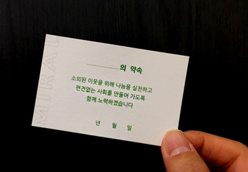 (거리캠페인 참여 시민에게 제공하는 '향기나는 카드')