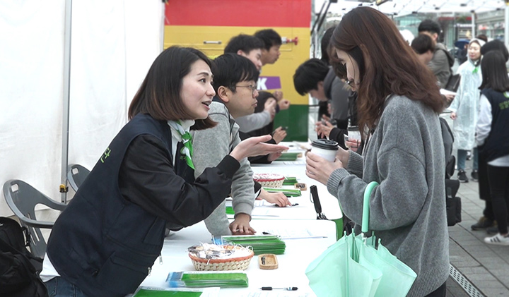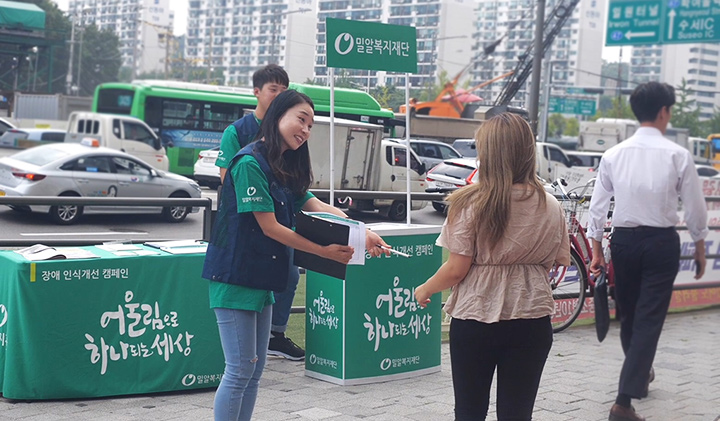 (거리캠페인에 참여하는 밀알복지재단 직원과 시민)