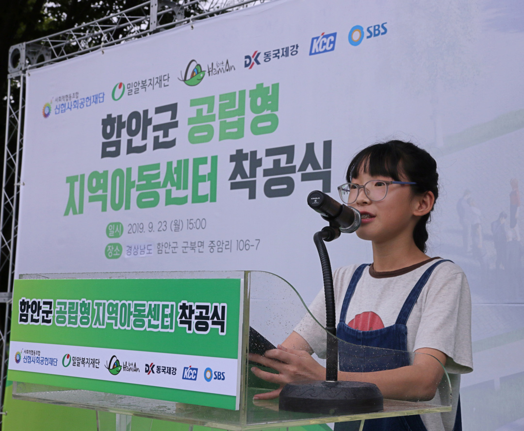“많은 기관과 단체의 좋은 뜻이 모여 지어지는 지역아동센터가 우리 아이들이 안전하게 보호받는 공간, 마음껏 뛰놀며 공부할 수 있는 배움의 공간이 되길 바랍니다.”