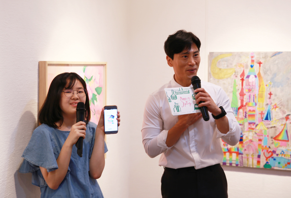 이번 정기전시회의 오프닝에는 특별히 SNS채널에서 일상 속의 이야기를 재치와 유머로 풀어내 대중의 큰 사랑을 받고 있는 개그맨 김재우 씨가 함께했습니다. 김재우 씨는 <봄> 전시회의 취지를 듣고 바쁜 스케줄에도 기쁘게 참석해, 오프닝 사회와 더불어 일일 큐레이터를 맡아주셨습니다.