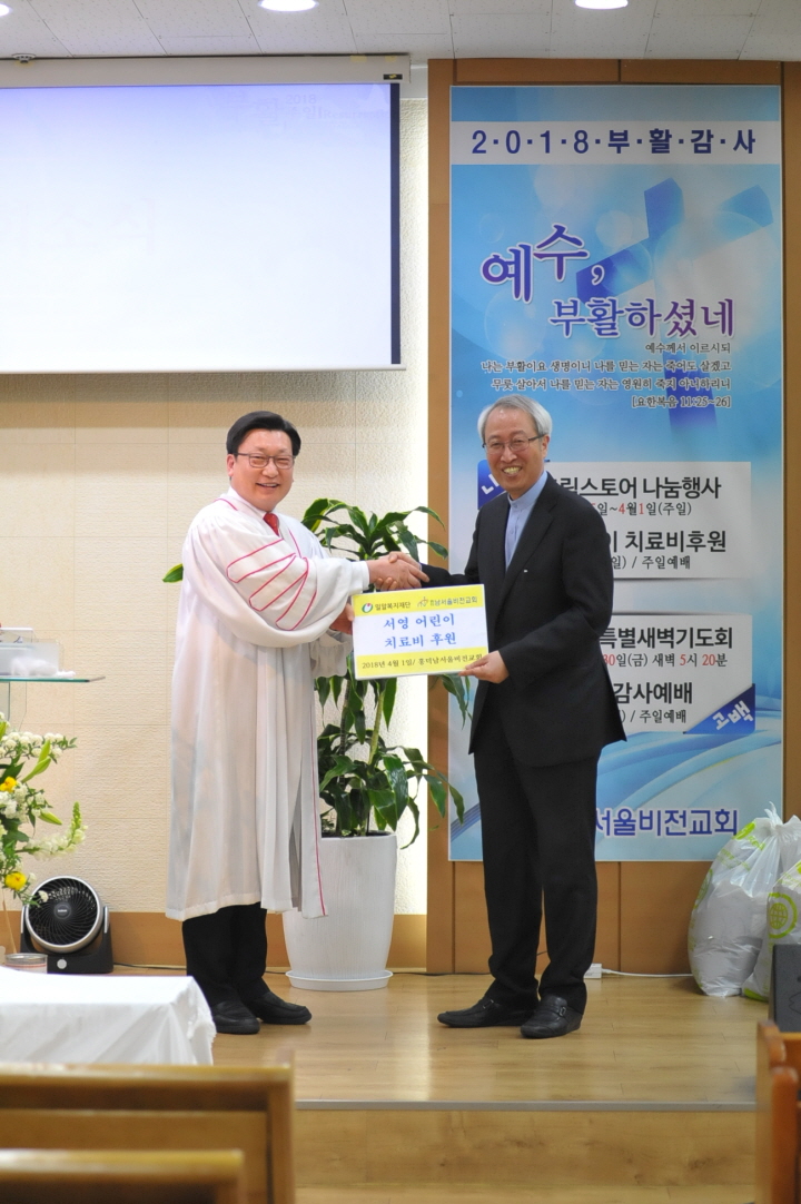 “부활절을 맞아 온 성도가 마음을 모아 나눔을 실천해준 것에 매우 감동했다. 치료비 뿐 아니라 물품후원까지 아낌없이 지원해주신 흥덕남서울비전교회 성도들께 깊은 감사를 드린다.”