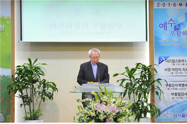 지난 4월 1일(일), 부활절을 맞이하여 경기도 용인에 위치한 흥덕남서울비전교회(담임목사 양용전)에서 나눔예배를 진행하였습니다. 이날 진행된 나눔예배에서는 밀알복지재단 정형석 상임대표가 ‘아브라함의 부활 신앙’이라는 제목으로 설교를 진행하였습니다.