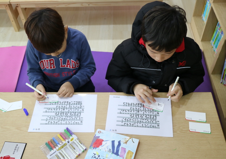 밀알복지재단 대전·충청지부에서는 지난 1월 11일, 대전광역시 관내 지역아동센터를 대상으로 시각장애에 대한 올바른 이해와 인간의 다양성 존중을 실현하기 위한 장애인식개선교육을 진행하였습니다. 이 교육은 시각장애에 대해 자세히 알아보는 시간과 시각장애인들을 대할 때의 에티켓 교육, 점자명함 만들기, 시각장애 간접체험(보조보행과 독립보행)으로 이루어진 90분 가량의 프로그램입니다.