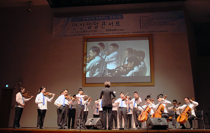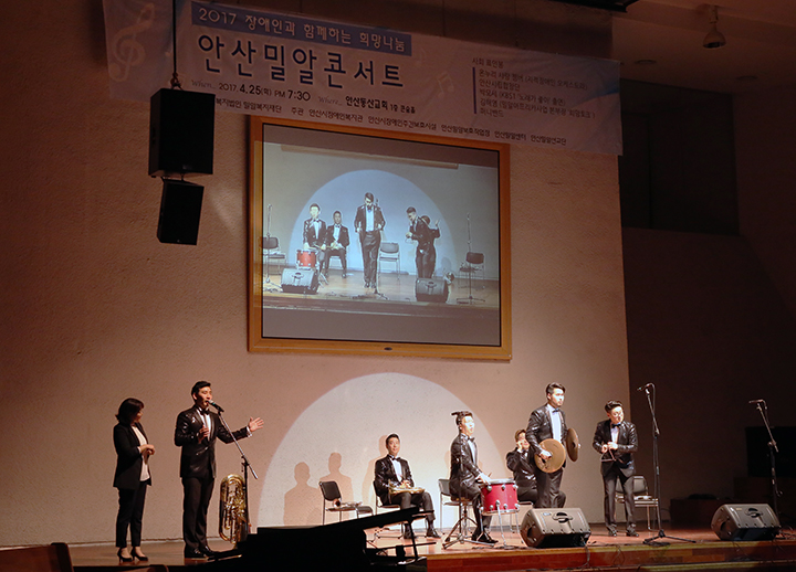 4월 장애인의 달을 맞아 개최된 안산밀알콘서트는 장애인과 비장애인이 한 무대에 설 뿐만 아니라, 이동이 불편한 장애인들을 위해 장애인관객석, 공연이 진행되는 내내 모든 공연 내용을 전달하는 수화 통역, 공연 중 함께 자리한 장애인의 돌발행동도 이해하는 통합음악회로 열렸습니다.
