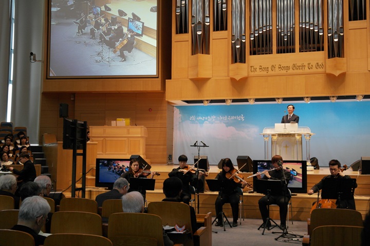 예배 중에 특별히 비장애인과 장애인 연주자가 더불어 아름다운 하모니를 이루는 <밀알앙상블> 공연이 더해졌습니다.