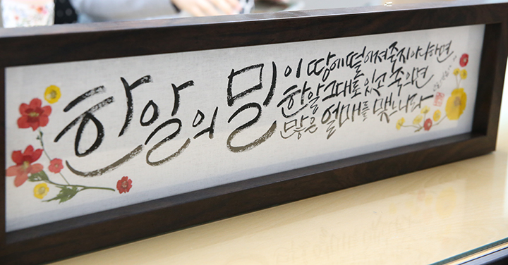 인터뷰를 마치고 돌아가는 길에 배정아 회원은 서울에서 멀리 부산까지 와주셔서 감사하다고, 작은 정성이라며 액자하나를 건네주셨습니다. 작은 정성이기엔 너무 큰 감동이 베여 있었습니다. 하나 되어 함께 살아가는 세상을 위해 더욱 노력하겠습니다.