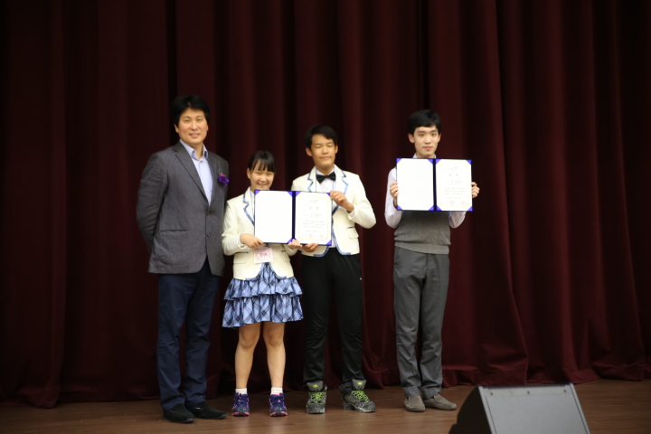 날개의 단원인 차지우 군(우측)이 날개를 대표해 금상 수상을 받고 있다