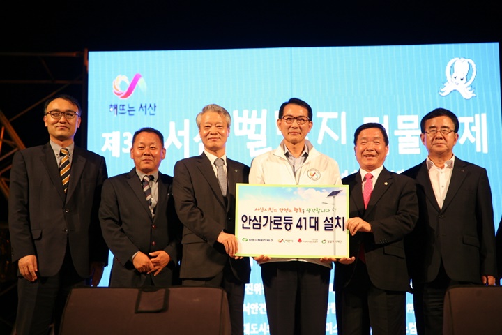 지난 10월 1일(토)에는 충남 서산시 중왕리 포구 일대에서 올해 첫 안심가로등 설치 완료를 기념하고 축하하는 전달식을 전영택 한수원 기획본부장, 성일종 국회의원, 이완섭 서산시 시장, 이기민 밀알복지재단 사무처장과 지역주민 등 많은 분들이 참석한 가운데 가졌습니다.
