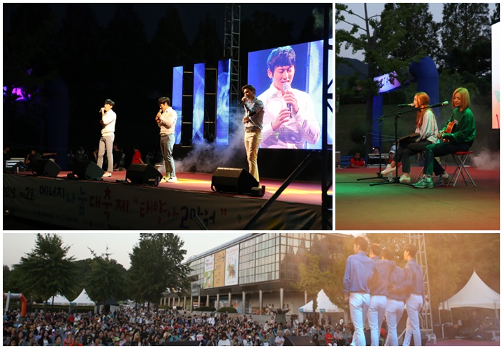 저녁 5시부터 개그맨 김상태씨의 사회로 에너지 나눔 콘서트가 진행되었습니다. 에너지 나눔 콘서트에는 V.O.S, 브로맨스, 스웨덴세탁소, 헬로봉주르가 재능기부로 참여하여 에너지 절약과 나눔 실천을 장려했습니다.