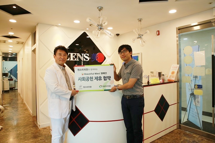 이번 사회공헌 협약을 통해 젠스미의원은 매달 수익의 일부를 국내의 소외된 이웃들을 돕는데 사용하기로 하였습니다.