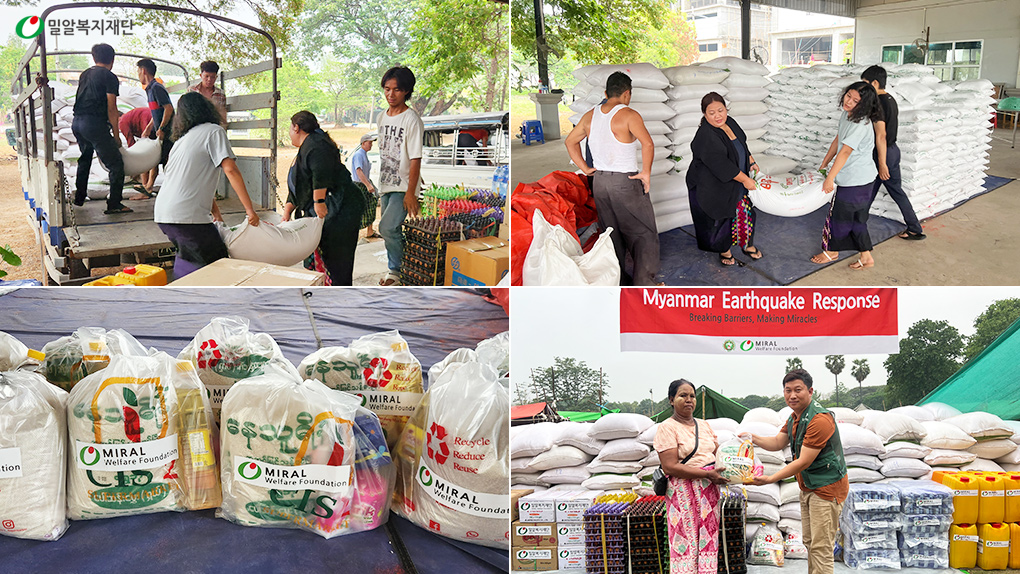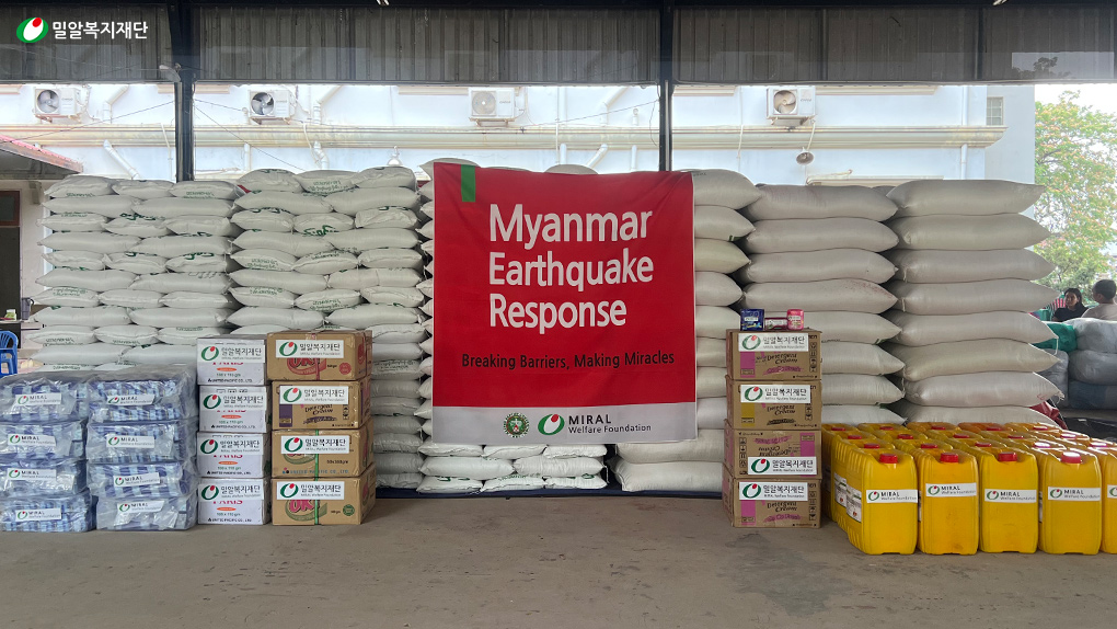 밀알복지재단은 이번 강진으로 피해 입은 만달레이 취약계층 및 이재민에게도 도움의 손길을 전하고자, 총 500여 가정(약 2,000명)을 대상으로 4월 9일 긴급구호 키트를 전달했습니다. 구호 키트에는 즉시 섭취할 수 있는 긴급 식량과 깨끗한 식수 등이 포함되었습니다. 또한, 집을 잃고 야외에서 생활하는 이재민들을 위해 모기장, 따뜻한 이불과 여벌 옷 등을 함께 제공했습니다.