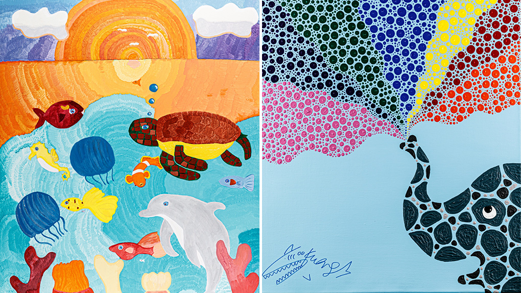 (좌)김지우 작가, ‘해바라기 캐릭터’ / (우)현승진 작가, ‘핑크동물 세상’