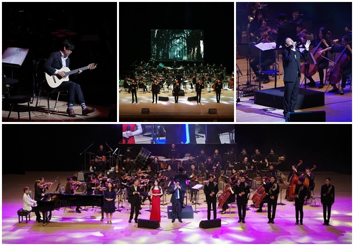 박상현 지휘자가 이끄는 모스틀리 필하모닉 오케스트라의 <윌리엄 텔 서곡>으로 시작된 1부에서는 가수 소향과 피아니스트 신지호, 하모니카 연주자 전제덕과 밀알첼로앙상블 날개가 공연을 펼쳤습니다.