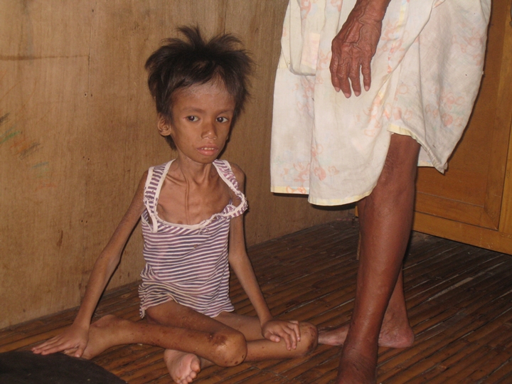 우리가 알드린을 처음 만났을 때 아무 것도 먹지 못한 상태였습니다. 급히 알드린을 섬 밖의 병원으로 후송하였습니다. 가장 시급한 영양 공급을 우선적으로 진행한 후 치료를 시작했습니다.