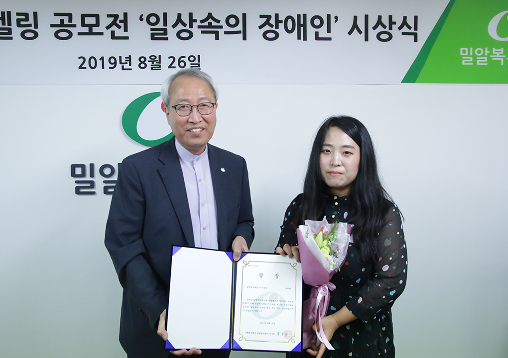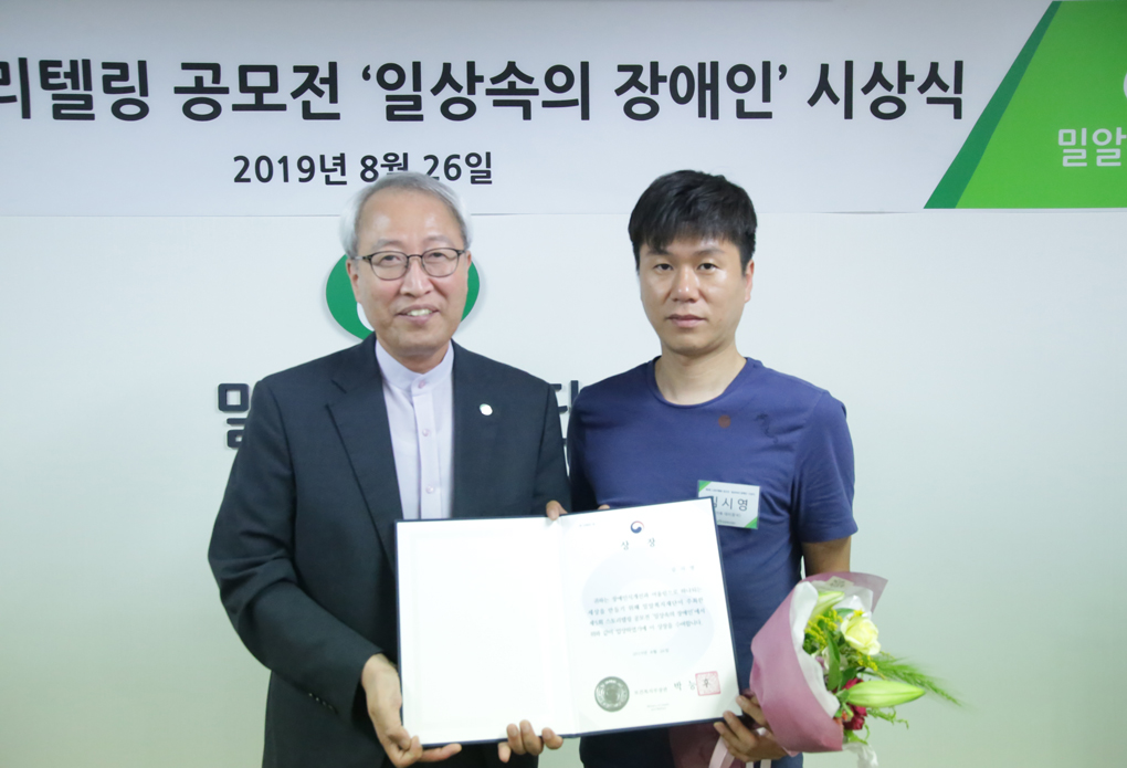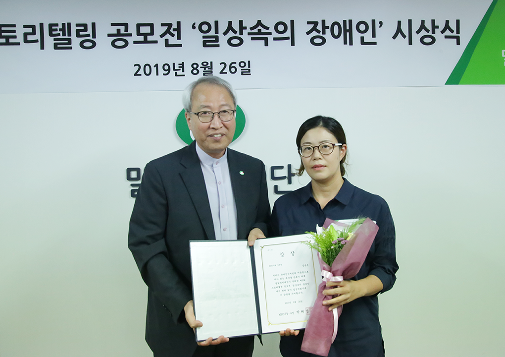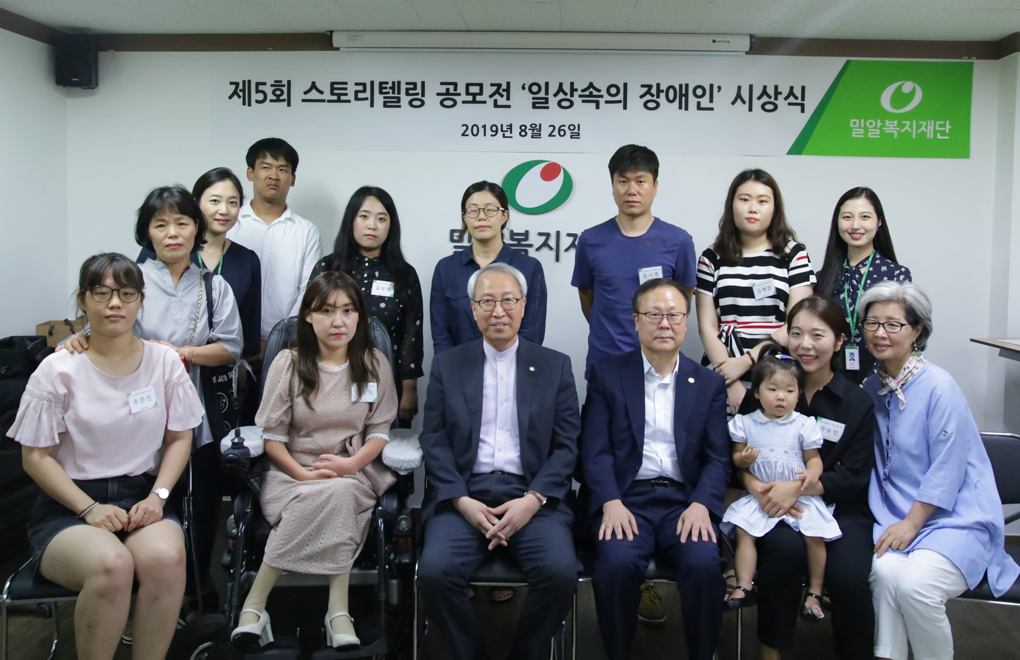 지난 826, 밀알복지재단에서 제5회 스토리텔링 공모전 일상속의 장애인시상식이 개최되었습니다. 스토리텔링 공모전 일상속의 장애인은 장애() 대한 우리 삶 속의 다양한 일상속의 이야기를 대중에게 알려 장애()에 대한 이해를 높이고 공감함으로 모두가 함께 어울림으로 살아가는 세상을 만들고자 진행하고 있습니다2015년부터 시작되어 올해로 5회차를 맞이한 이번 공모전은 밀알복지재단이 주최하고 보건복지부, 국민일보, 에이블뉴스, MBC나눔이 후원사로 협력해주었습니다.