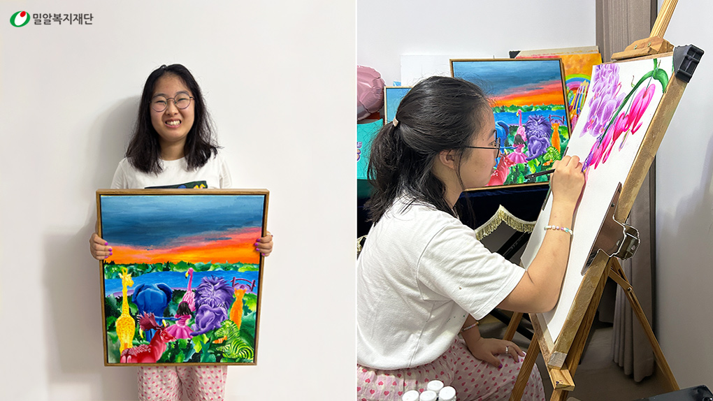 또한 작품을 완성하고 제목을 붙이는 순간이 가장 설레는 시간이었다며, ‘숲속의 친구들’이라는 제목을 정하고 나니 그림 속 이야기가 더욱 또렷하게 살아난 것 같았다고 전했습니다.