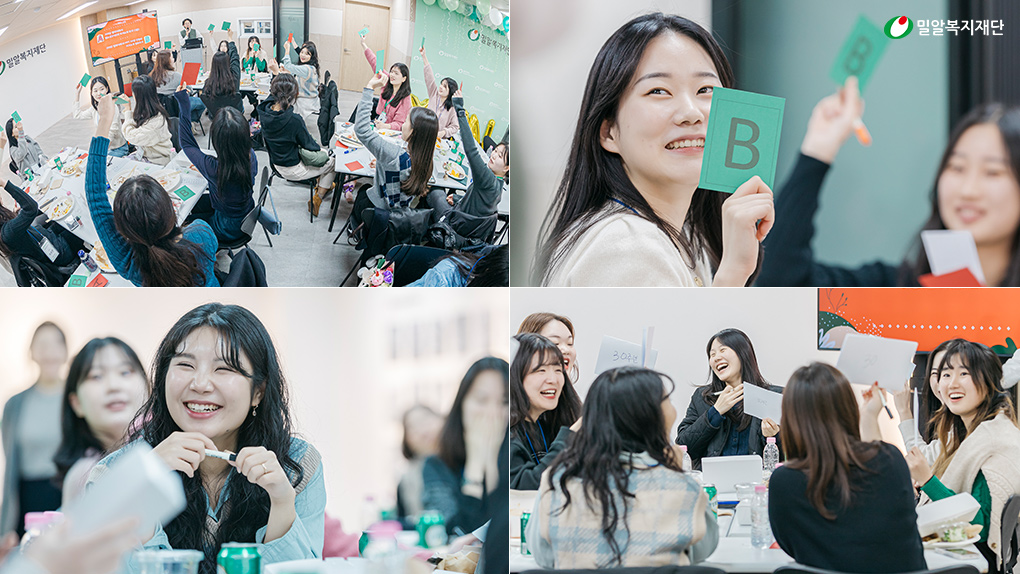 따뜻한 연말을 준비하는 12월 15일, 밀알복지재단 대학생 기자단 홈커밍데이가 열렸습니다. 기자단의 첫 시작, 코로나 시기를 거쳐간 선배 기자단들과 이제 막 수료한 후배 기자단들이 한자리에 모이는 날이었습니다. 2019년 첫 기수를 배출한 이래 처음으로 마련된 자리인 만큼, 1기부터 5기까지 모든 기수가 빠짐없이 참석해 자리를 빛냈습니다.
