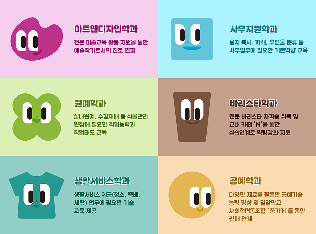 (위: 공예학과, 아래: 바리스타학과, 아트앤디자인학과)